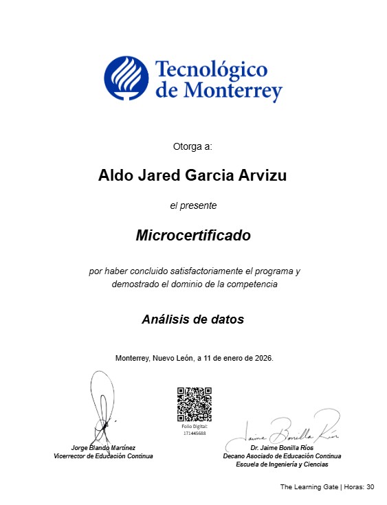 Soy Aldo Jared. Especialista en construir pipelines ETL robustos, an谩lisis estad铆stico avanzado y despliegue de modelos de Machine Learning.
